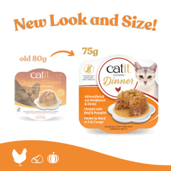 Catit Chicken Dinner is the ultimate mealtime indulgence for your feline friend. Made with natural, wholesome ingredients and enriched with vitamins and minerals, this wet cat food offers a unique double-layered texture that your cat will love. Whether it's chicken or fish, every meal is crafted to provide a delicious, healthy, and high-protein dining experience. Perfect as a standalone meal or a complement to your cat's dry food diet, Catit Dinner ensures your cat gets the nutrition they need to live their best nine lives.