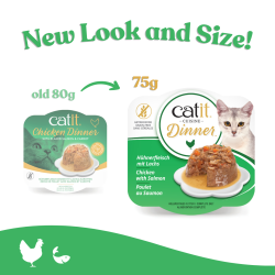 Catit Chicken Dinner is the ultimate mealtime indulgence for your feline friend. Made with natural, wholesome ingredients and enriched with vitamins and minerals, this wet cat food offers a unique double-layered texture that your cat will love. Whether it's chicken or fish, every meal is crafted to provide a delicious, healthy, and high-protein dining experience. Perfect as a standalone meal or a complement to your cat's dry food diet, Catit Dinner ensures your cat gets the nutrition they need to live their best nine lives.