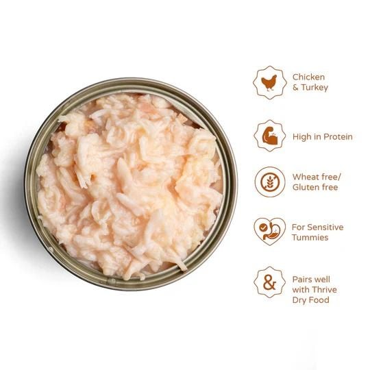 Introducing Thrive Complete Cat Chicken & Turkey Wet Food, expertly crafted to offer a delectable and nutritionally balanced meal for your feline companion. This premium wet food is tailored to satisfy even the most discerning cats while promoting optimal health and hydration.