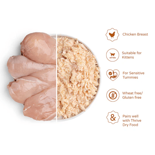 Introducing Thrive Complete Wet Kitten Food, a premium meal designed to meet the nutritional needs of your growing kitten. With an emphasis on high-quality protein and ideal hydration, this food provides your kitten with the perfect start in life.