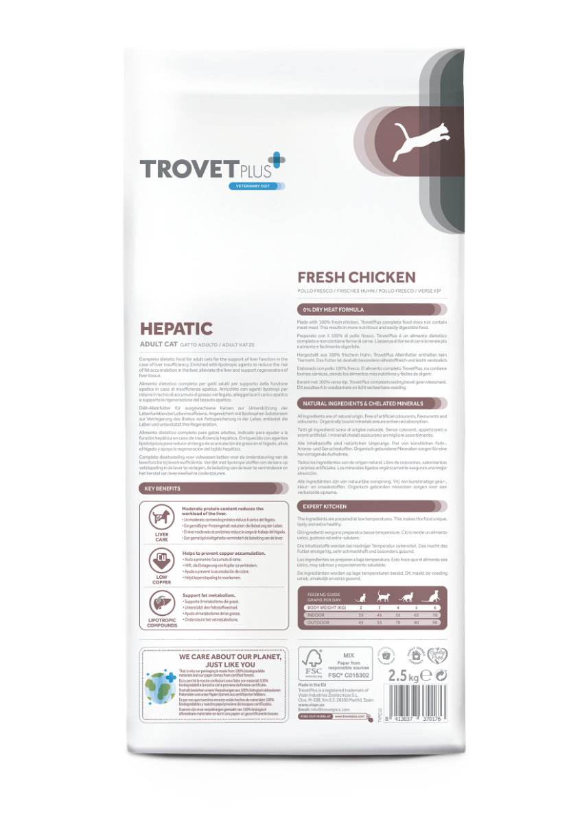 Trovet Plus Adult Cat Hepatic Chicken is a complete veterinary diet specially formulated to support adult cats with liver disease or impaired liver function.