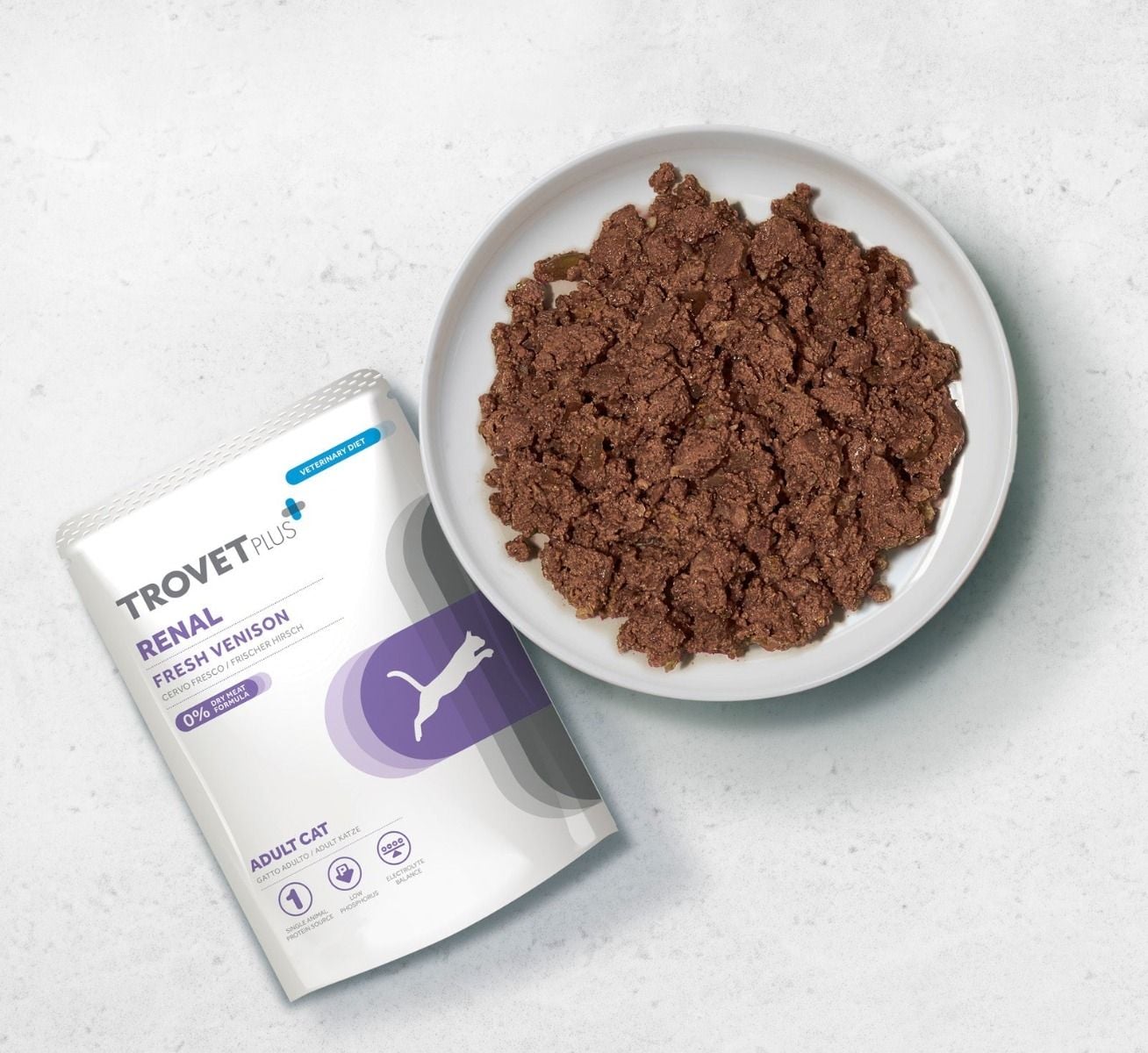 Trovet Plus Renal Venison Veterinary Diet Wet Food is a complete dietary solution formulated to support adult cats with chronic kidney disease (CKD) or reduced kidney function. Renal conditions require carefully controlled nutrition to help ease the workload on the kidneys while maintaining essential nutrient intake for overall health and vitality.