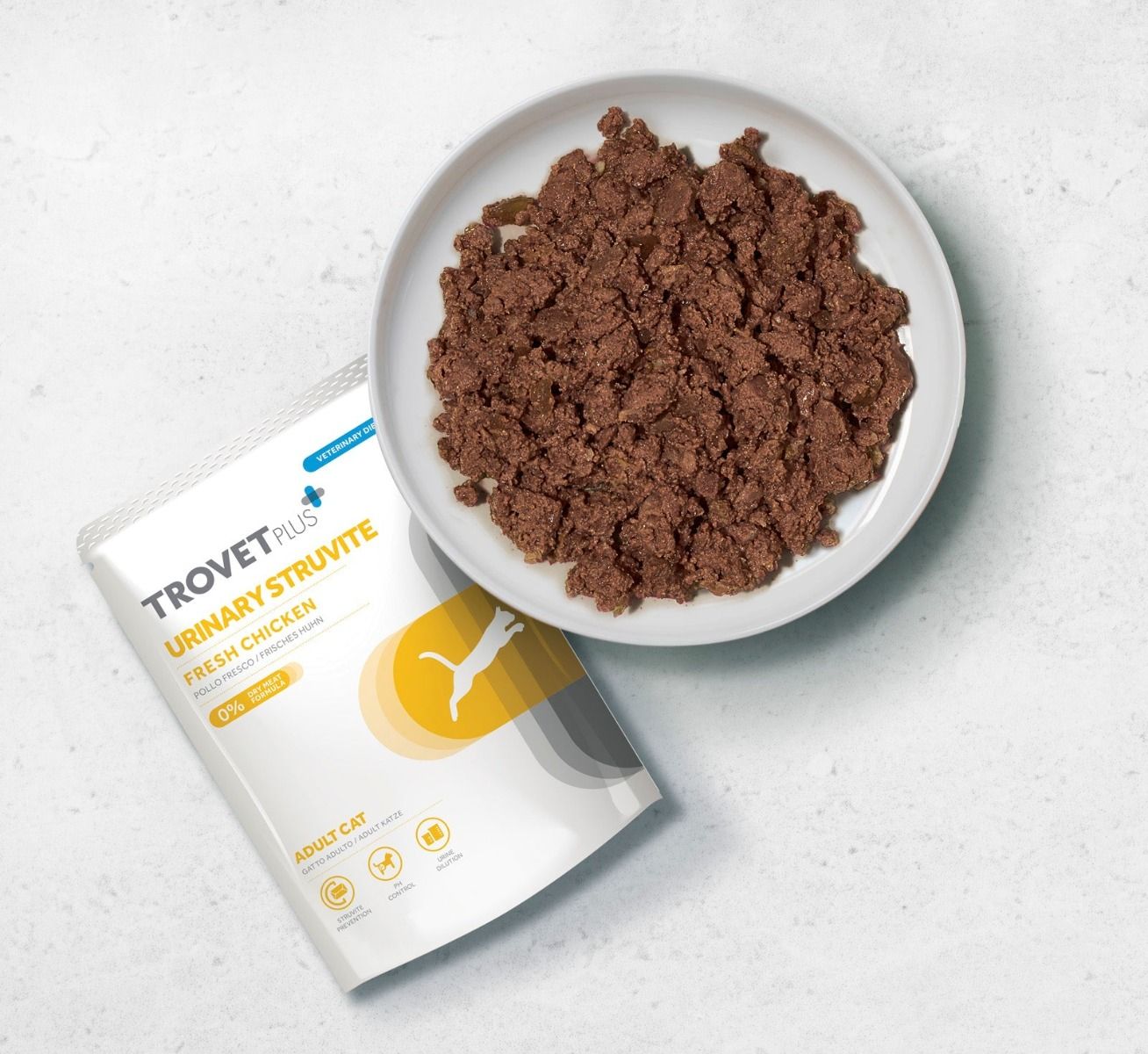 Trovet Plus Urinary Struvite Fresh Chicken Veterinary Diet Wet Food is a complete dietary solution developed for adult cats with urinary tract disorders, particularly those prone to struvite crystal and stone formation. Effective nutritional management is essential in dissolving existing struvite stones and reducing the risk of recurrence. This veterinary diet is formulated to support urinary health while providing balanced daily nutrition.